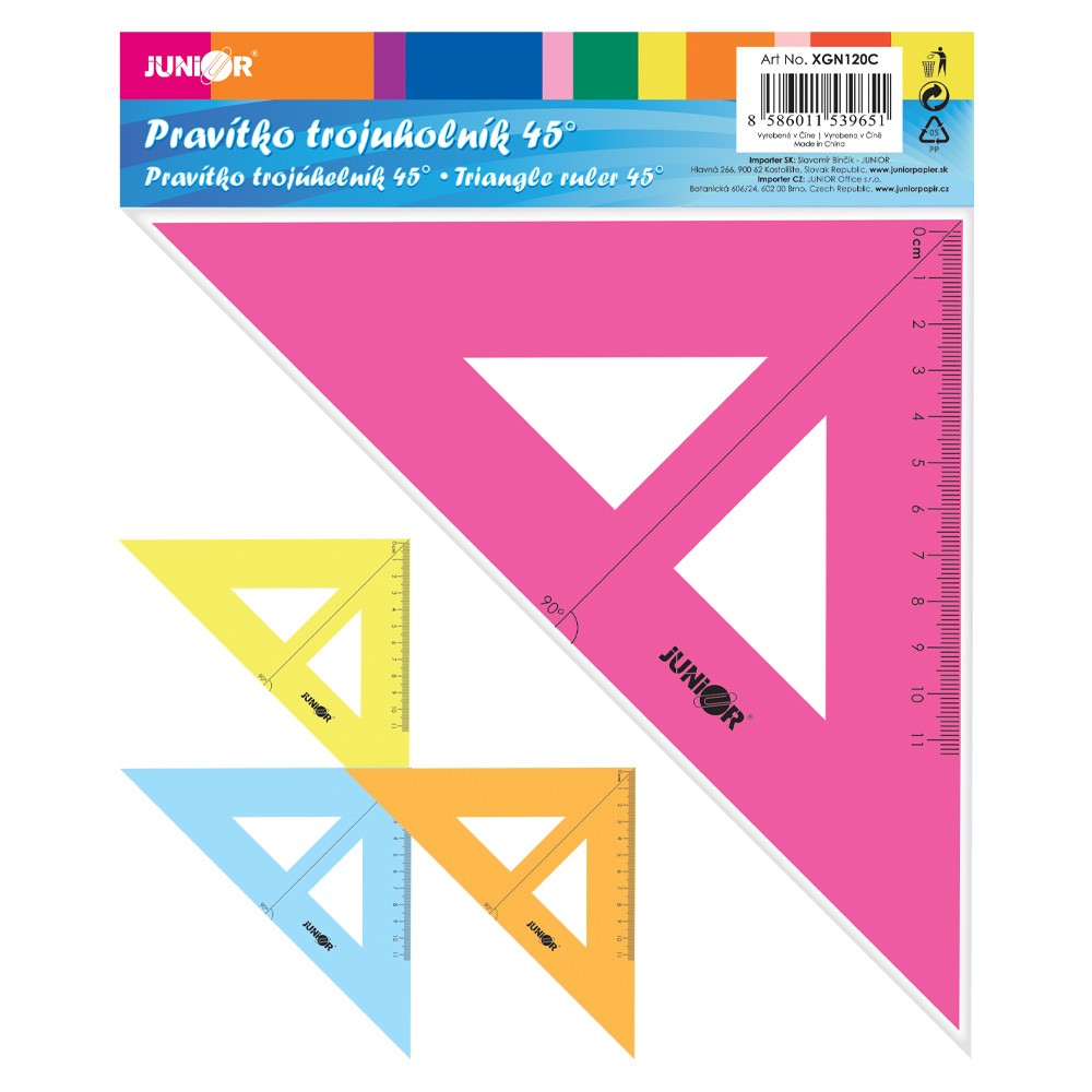 Úvod/Kancelária a papiernictvo/Školské potreby/Pravítka/Pravítko trojuholník s ryskou 16 cm, transparentné/farebné na blistriPravítko trojuholník s ryskou 16 cm, transparentné/farebné na blistriID produktu1000906EAN kód8586011539651VýrobcaFarba 0.38 € bez DPH0.47 €Cena s DPHmomentálne nedostupnéDoprava už od 3.00 € prostredníctvom Packeta - výdajné misto a Z-Box