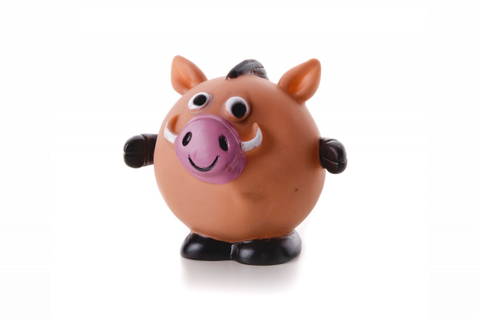 Vinylová pískacia hračka loptu diviak. Hračka v tvare lopty a podobizne diviaka je ideálnou hračkou pre aktívnu hru so psíkom. Hračka je plávajúca na hladine. Hračka je pískacia. Vďaka pískatku ľahko upútate pozornosť vášho psíka a ten bude pripravený na zábavnú hru. Hračka je vhodná na použitie vonku aj doma.
